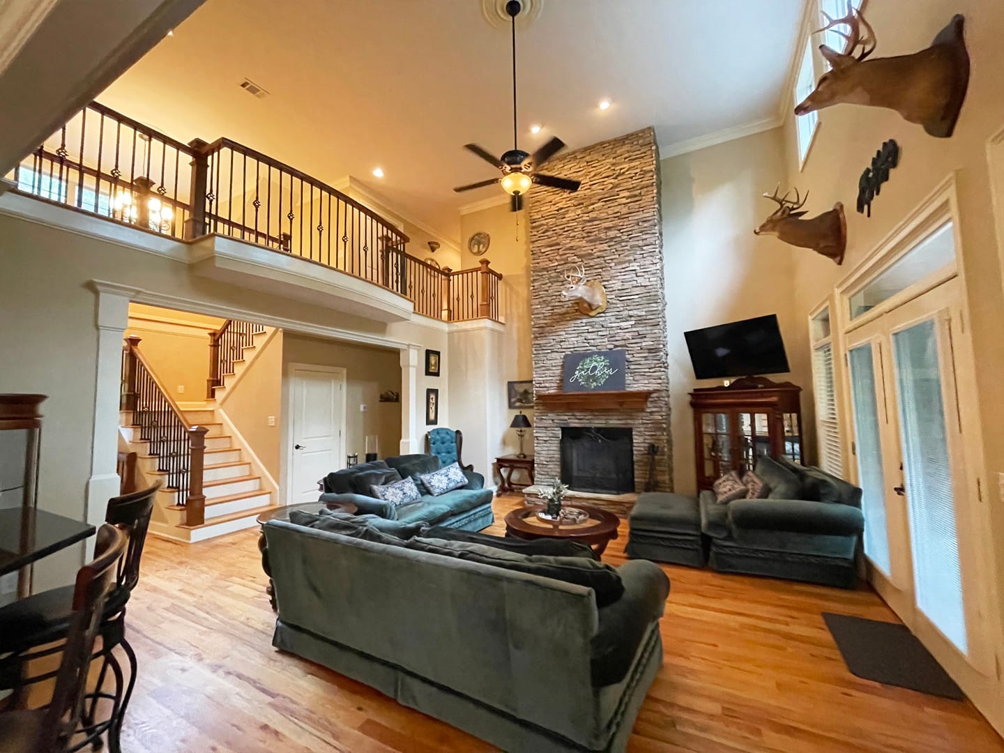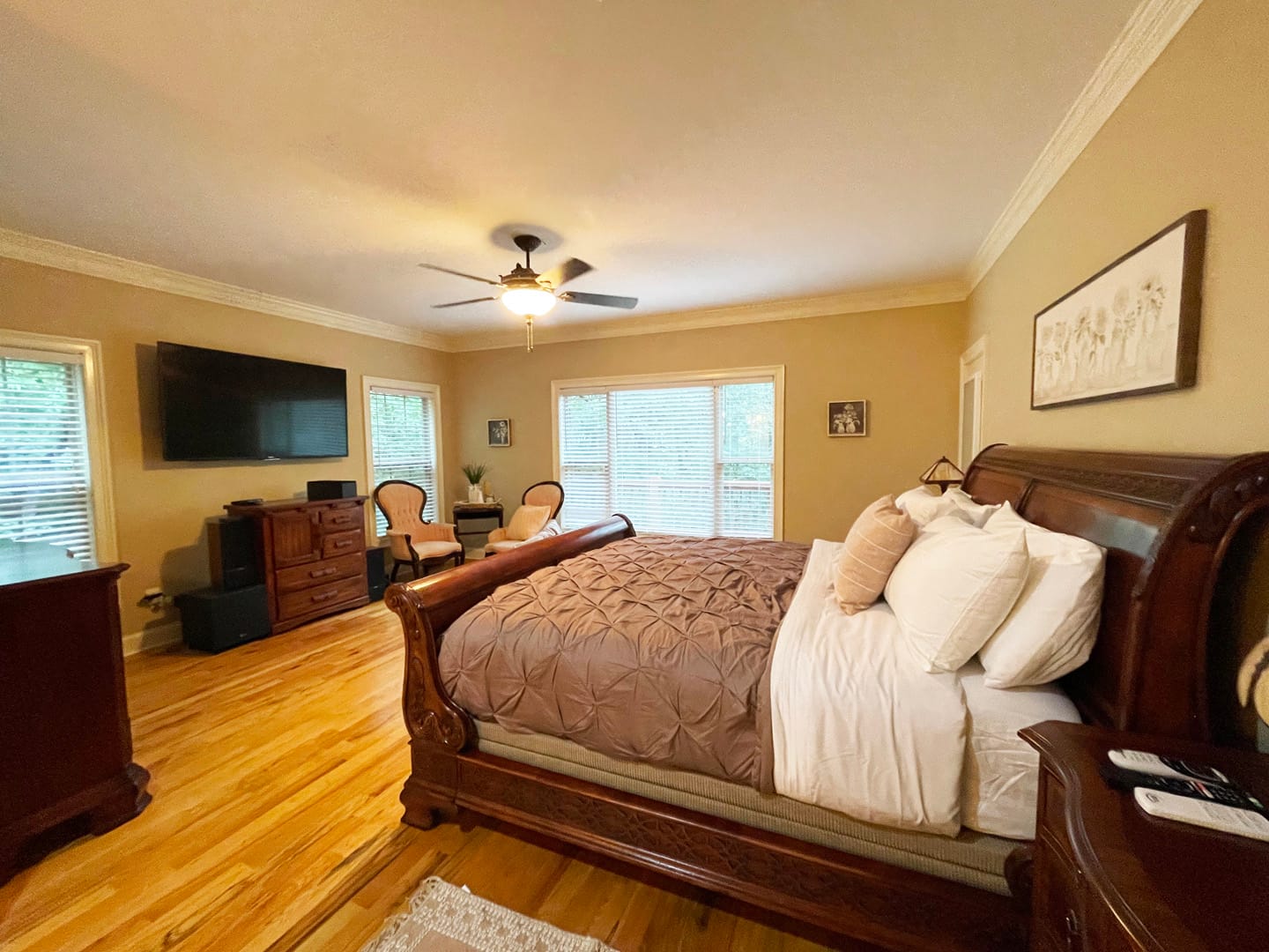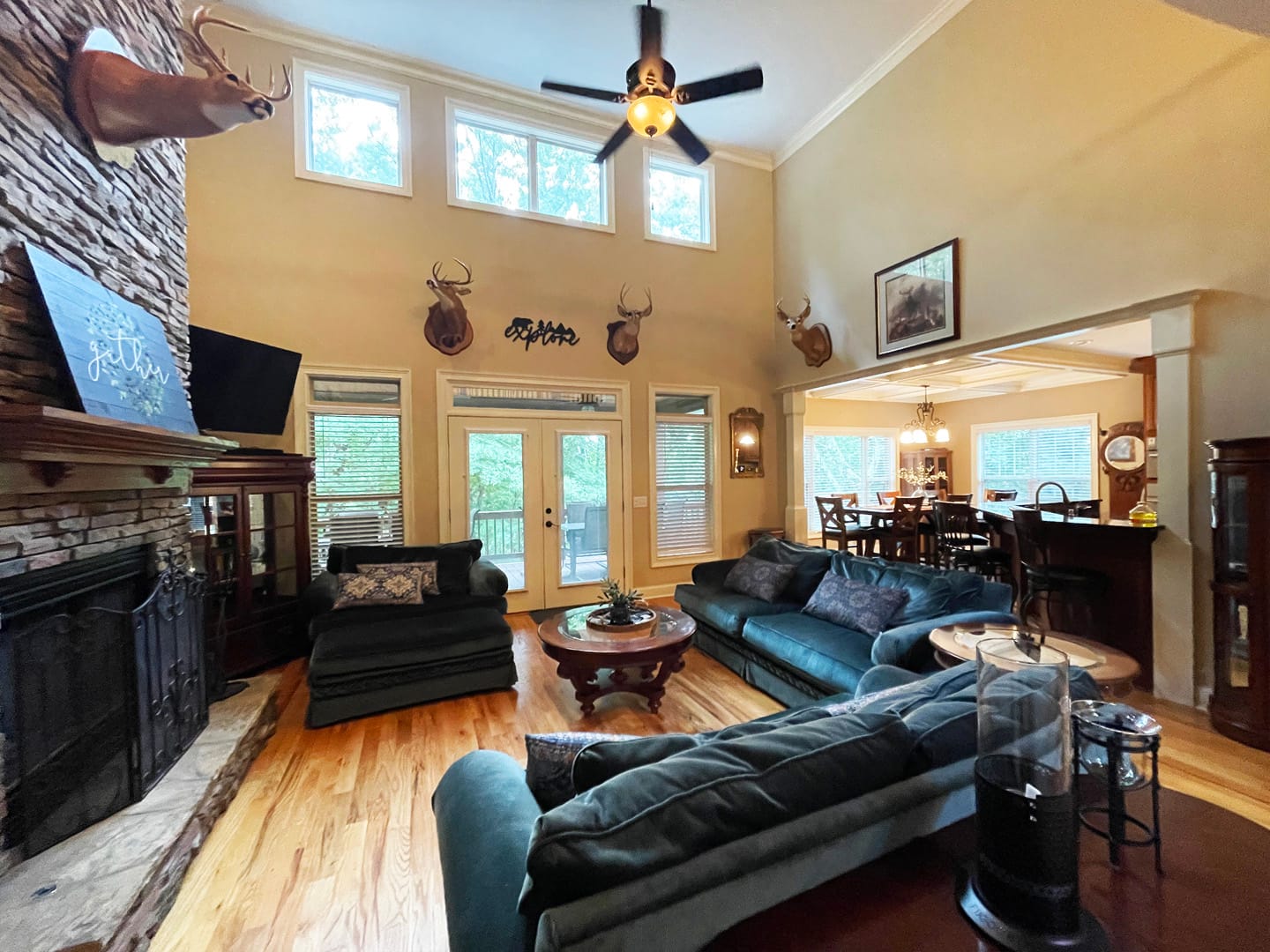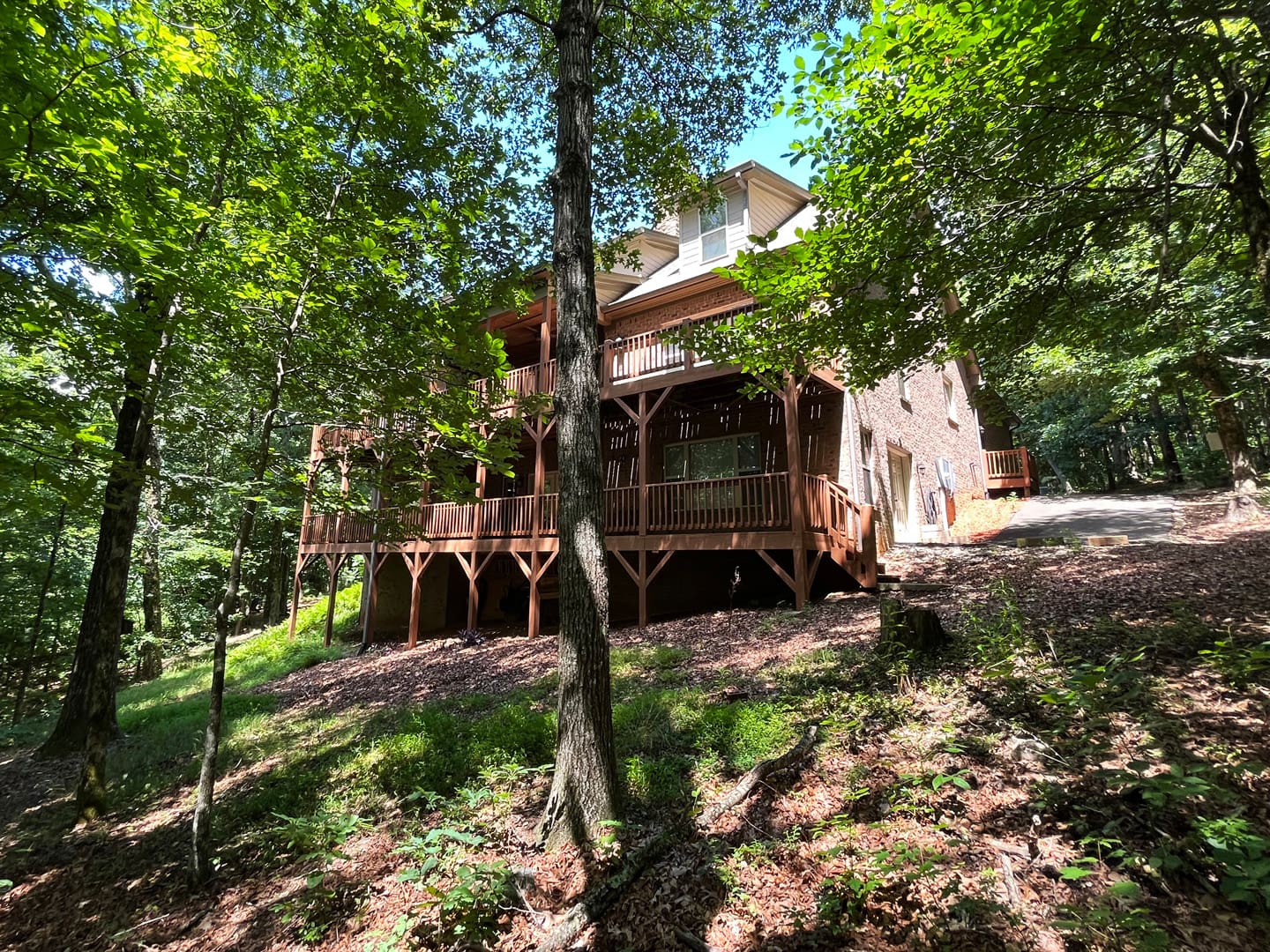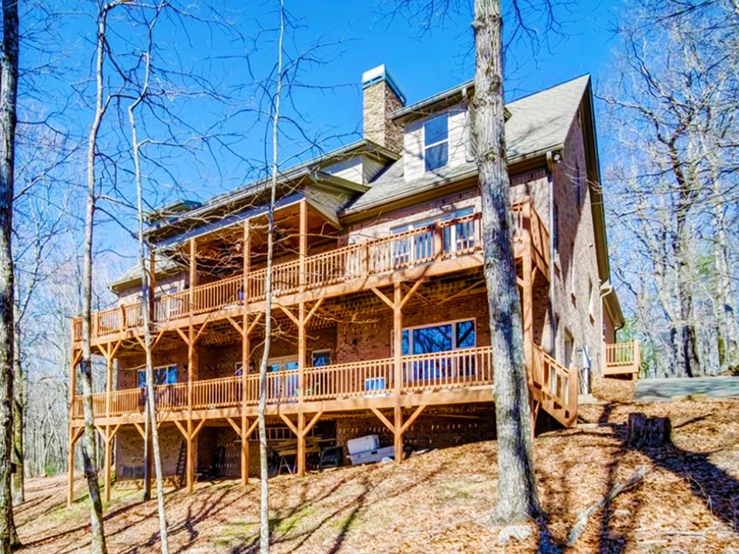 Looking for a luxury mountain retreat? Big Bear Cabin is a Secluded & Peaceful, Stone & Wood Rustic Mountain Cabin, where hiking, and plentiful wildlife such as bears, deers and more await you at this one-of-a-kind 4 bed, 3.5 bath cabin! With your own private gated road on a wooded 10+ acres mountain land with private trails and a large paved driveway. This cabin is designed to take full advantage of the views of Dawson Forest, Burnt Mountain, and Mt. Oglethorpe from the large back decks and window views.